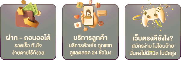 ตอบ : - มีความน่าเชื่อถือสูง บริการครบวงจร ระบบเสถียร รองรับการเล่นทั้งคอมพิวเตอร์และมือถือ พร้อมทีมซัพพอร์ตดูแล 24 ชั่วโมง